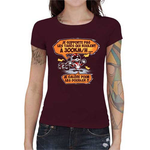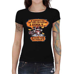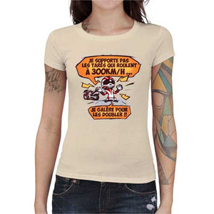 Vous êtes une femme geek, et fier de l’être ? Ou bien vous souhaitez faire plaisir à votre merveilleuse geekette ? Alors on n’a aucun doute que ce T shirt Motarde - 300 km/h va vous plaire !