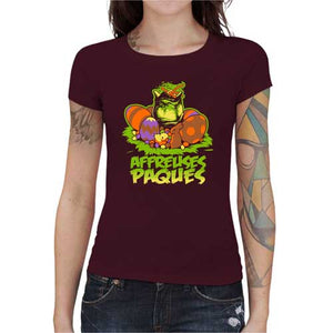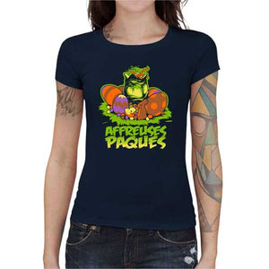Vous êtes une femme geek, et fier de l’être ? Ou bien vous souhaitez faire plaisir à votre merveilleuse geekette ? Alors on n’a aucun doute que ce T-shirt Geekette - Affreuses Pâques va vous plaire !