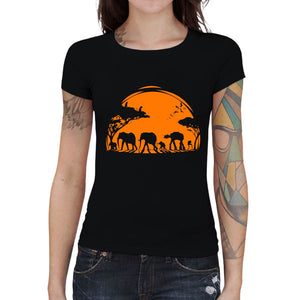 Votre oeil de geek les avaient bien sûr repérés, se camouflant derrière de paisibles éléphants pour mieux nous prendre par surprise: un AT-AT et un AT-ST de l’Empire ! Par contre, aviez-vous trouvé les deux vaisseaux dans le ciel ? Très graphique, et distillant une jolie ambiance, Africa Wars est un de vos tee-shirts Star Wars préférés de Checkpoint !