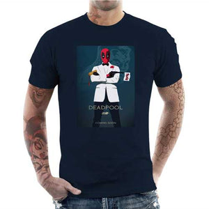 Vous vous en êtes certainement rendu compte, ce tee-shirt Deadpool n’est autre qu’une parodie très classe de James Bond ! Que donnerait le super-héros le plus subversif de l’univers Marvel en agent secret ? Déjà, aucun complot, aucune menace nucléaire, ni aucun bad guy ne lui résisterait ! Avec ses pouvoirs, Deadpool ne ferait de ses ennemis qu’une bouchée. Tout en apportant un peu de folie et d’humour trash lors de ses missions, histoire de changer un peu du flegme typiquement britannique de James Bond… Bref, si vous validez l’idée, à vous de le montrer en portant ce tee-shirt Marvel des plus originaux et décalés !