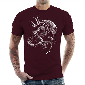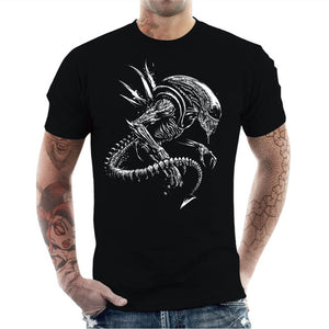 Ce t-shirt met en avant le célèbre Alien, le Xénomorphe iconique, dans une illustration monochrome blanche qui souligne chaque détail terrifiant de la créature. Avec un niveau de détails saisissant, l'illustration capture parfaitement l'aura menaçante de ce monstre emblématique. Chaque courbe, chaque ombre, et chaque trait accentuent la peur qu'il inspire, créant un design qui attire les regards tout en évoquant la terreur. Un hommage aux films cultes de science-fiction et d'horreur, idéal pour ceux qui aiment l'esthétique sombre et les créatures mystérieuses qui incarnent le danger et l'inconnu.