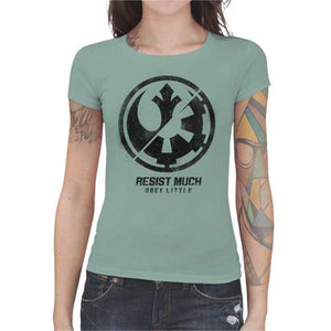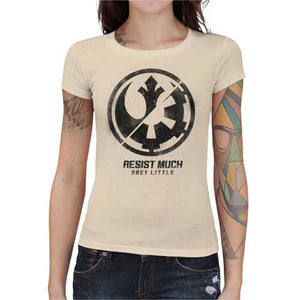 Resist much, obey little ! Incarnez vous aussi la résistance en portant ce magnifique tee-shirt Star Wars. Le combat désespéré de l’Alliance Rebelle pour défier l’Empire galactique de Palpatine est au cœur des enjeux de la trilogie originale. De l’appel à l’aide de Leia à la fantastique bataille finale d’Endor, ce face-à-face incroyable aura conquis le cœur des fans. Le voici représenté sous une forme minimaliste et ultra esthétique, avec un message qui séduira tout particulièrement les plus rebelles. Un t-shirt Star Wars qui a d’autant plus de cachet que seuls les connaisseurs reconnaîtront ces emblèmes !