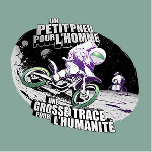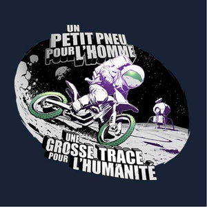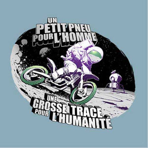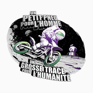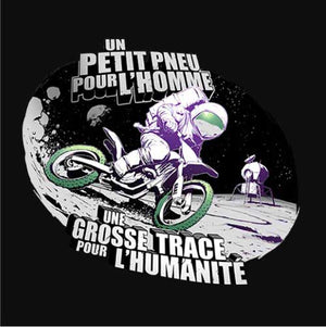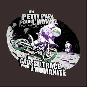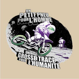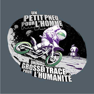 Comment détourner l’une des phrases les plus célèbres de l’histoire, pour en faire un surpuissant t-shirt pour motards ? Demandez à Checkpoint ! Plus encore que les empreintes de pas historiques de l’astronaute Neil Armstrong, imaginez les belles traces que vous pourriez faire sur la lune avec votre fière bécane ! De quoi marquer l’humanité à votre manière... Une illustration aussi drôle que stylée, pour tous ceux qui aiment laisser des traces partout où ils passent !