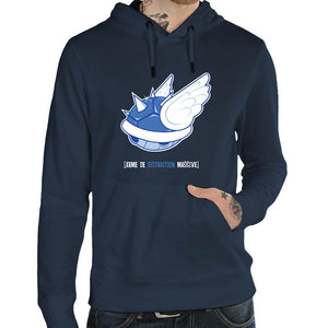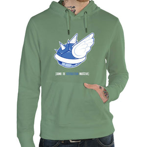Les habitués de Mario Kart auront immédiatement reconnu sur ce t-shirt l’item le plus cheaté de tous les temps: la carapace bleue ! Pour un mal classé, c’est l’assurance de dézinguer le premier de la course, quasiment à tous les coups. Mais pour le premier qui en ferait les frais, c’est un cauchemar absolu, en particulier lorsque cet objet du diable est utilisé dans le dernier tour ! Autant vous dire qu’on a pris un malin plaisir à faire de cette arme de distraction massive un tee-shirt…