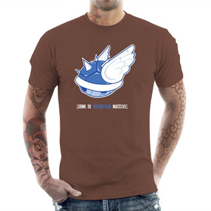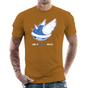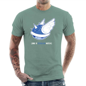 Les habitués de Mario Kart auront immédiatement reconnu sur ce t-shirt l’item le plus cheaté de tous les temps: la carapace bleue ! Pour un mal classé, c’est l’assurance de dézinguer le premier de la course, quasiment à tous les coups. Mais pour le premier qui en ferait les frais, c’est un cauchemar absolu, en particulier lorsque cet objet du diable est utilisé dans le dernier tour ! Autant vous dire qu’on a pris un malin plaisir à faire de cette arme de distraction massive un tee-shirt…