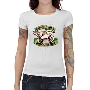 Vous êtes une femme geek, et fier de l’être ? Ou bien vous souhaitez faire plaisir à votre merveilleuse geekette ? Alors on n’a aucun doute que ce T shirt Motarde - Arsouilleur-né va vous plaire !