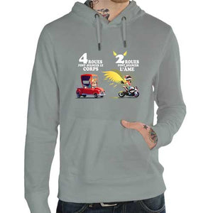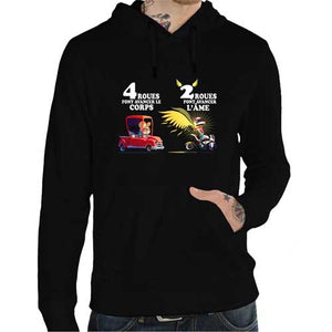 Les premières fraicheurs arrivent, et vous n’êtes plus sûr que votre tee-shirt va suffire ? Pas de panique ! Ce Sweat Moto - 4 roues VS 2 roues va tout simplement vous sauver la vie !