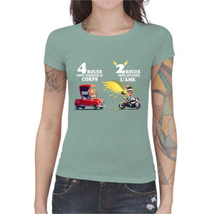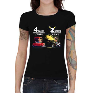 Vous êtes une femme geek, et fier de l’être ? Ou bien vous souhaitez faire plaisir à votre merveilleuse geekette ? Alors on n’a aucun doute que ce T shirt Motarde - 4 roues VS 2 roues va vous plaire !