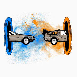 Nom de Zeus… Que se passerait-il, comme le montre ce tee-shirt, si une DeLorean atteignait les 88 miles à l'heure à travers deux portails placés l’un en face de l’autre ? On laisse les plus scientifiques d’entre vous imaginer les conséquences rigolotes, ou bien cataclysmiques que cela engendrerait…