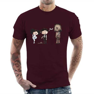 Les tee-shirts Star Wars, on adore ça chez Checkpoint ! La saga de George Lucas nous a toujours beaucoup inspirés pour vous proposer des modèles originaux et délirants ! Ici, c’est le très poilu Chewbacca qui s’y colle. Etant donné que les voyages intergalactiques et autres combats spatiaux contre l’Empire prennent un temps fou, le pauvre wookie est visiblement resté trop longtemps sans sortir du Faucon Millenium…