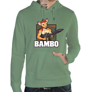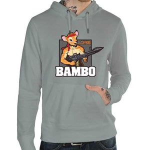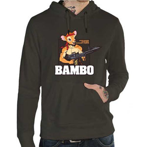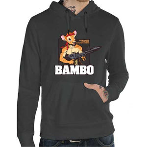 Meutri durant son enfance par l’odieux assassinat de sa mère, Bambi est devenu Bambo, une redoutable machine de guerre, qui n’a grandi que pour la vengeance. Croyez-nous, les chasseurs vont prendre cher… Checkpoint vous propose un crossover stylé et hilarant entre le chef-d'œuvre d’animation de Walt Disney et la saga Rambo, classique du cinéma d’action. Fou rire assuré, pour un tee-shirt totalement barré !