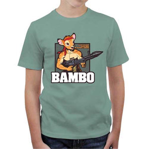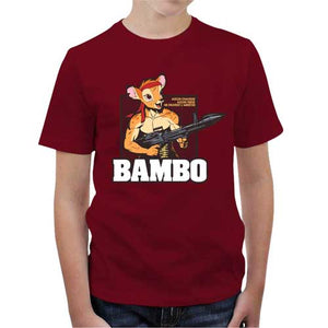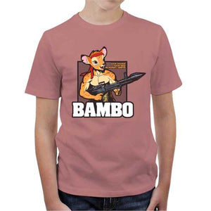 Meutri durant son enfance par l’odieux assassinat de sa mère, Bambi est devenu Bambo, une redoutable machine de guerre, qui n’a grandi que pour la vengeance. Croyez-nous, les chasseurs vont prendre cher… Checkpoint vous propose un crossover stylé et hilarant entre le chef-d'œuvre d’animation de Walt Disney et la saga Rambo, classique du cinéma d’action. Fou rire assuré, pour un tee-shirt totalement barré !
