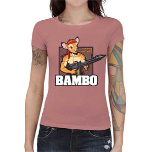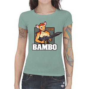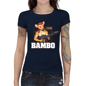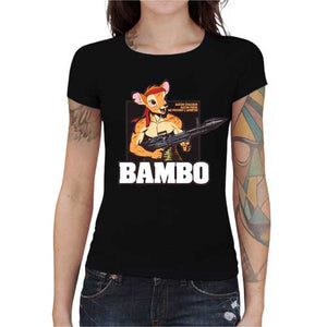 Meutri durant son enfance par l’odieux assassinat de sa mère, Bambi est devenu Bambo, une redoutable machine de guerre, qui n’a grandi que pour la vengeance. Croyez-nous, les chasseurs vont prendre cher… Checkpoint vous propose un crossover stylé et hilarant entre le chef-d'œuvre d’animation de Walt Disney et la saga Rambo, classique du cinéma d’action. Fou rire assuré, pour un tee-shirt totalement barré !