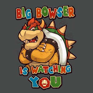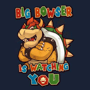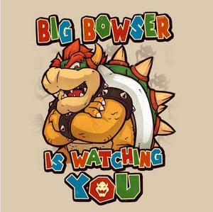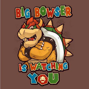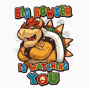 Ennemi juré de Mario, kidnappeur de princesse Peach à ses heures perdues, Bowser est l’un des méchants emblématiques de l’univers Nintendo ! Si vous appréciez ce personnage aussi machiavélique que badass, vous allez adorer notre astucieux jeu de mots faisant référence au redoutable Big Brother du roman culte 1984 ! Un tee-shirt gamer incroyablement classe !