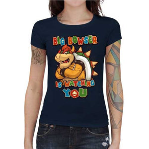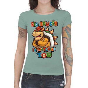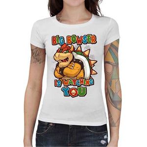 Ennemi juré de Mario, kidnappeur de princesse Peach à ses heures perdues, Bowser est l’un des méchants emblématiques de l’univers Nintendo ! Si vous appréciez ce personnage aussi machiavélique que badass, vous allez adorer notre astucieux jeu de mots faisant référence au redoutable Big Brother du roman culte 1984 ! Un tee-shirt gamer incroyablement classe !