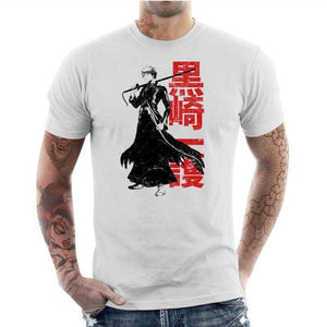 Avec ses personnages ultra charismatiques, ses dessins très esthétiques et ses combats de folie, Bleach figure incontestablement parmi les shonen majeurs des dernières décennies. Autant dire qu’on était particulièrement motivés à l’idée de vous proposer un tee-shirt à l’effigie de son héros Ichigo Kurosaki, et son très classe zanpakutō. Une illustration qui en impose, pour se rappeler aux belles heures du manga de Tite Kubo.