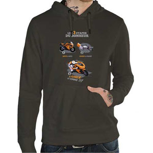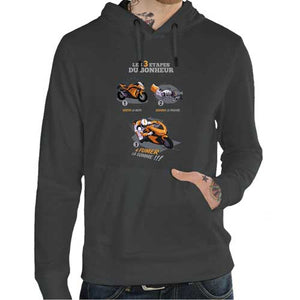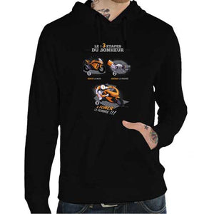 Les premières fraicheurs arrivent, et vous n’êtes plus sûr que votre tee-shirt va suffire ? Pas de panique ! Ce Sweat Moto - Bonheur va tout simplement vous sauver la vie !