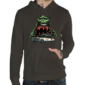 Avec "Bouffe-tout", replonge dans l’univers culte de SOS Fantômes version années 80. Cette illustration rétro met en scène le célèbre fantôme glouton vert, la bouche grande ouverte, engloutissant les silhouettes des chasseurs de fantômes. En avant-plan, la légendaire Ecto-1 est prête à intervenir, moteur rugissant et sirène hurlante. Un hommage graphique, drôle et nostalgique à la pop culture paranormale, parfait pour les amateurs de proton packs, de slime et de répliques cultes. Un t-shirt aussi effrayant qu’iconique, idéal pour affronter les esprits… ou pour briller dans les soirées rétro.