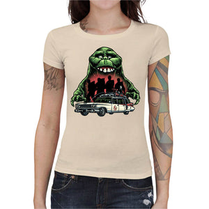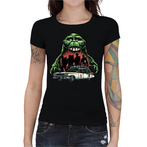 Avec "Bouffe-tout", replonge dans l’univers culte de SOS Fantômes version années 80. Cette illustration rétro met en scène le célèbre fantôme glouton vert, la bouche grande ouverte, engloutissant les silhouettes des chasseurs de fantômes. En avant-plan, la légendaire Ecto-1 est prête à intervenir, moteur rugissant et sirène hurlante. Un hommage graphique, drôle et nostalgique à la pop culture paranormale, parfait pour les amateurs de proton packs, de slime et de répliques cultes. Un t-shirt aussi effrayant qu’iconique, idéal pour affronter les esprits… ou pour briller dans les soirées rétro.