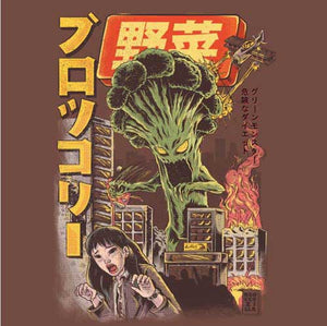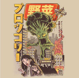 Lorsque vous étiez enfant, vous aviez les brocolis en horreur, au point d’en faire des cauchemars ? L’un d’eux aurait pu prendre la forme d’une attaque de Broccozzila, un terrible monstre qui sème chaos et destruction partout où il passe ! Amoureux de la culture japonaise et des films kaijū eiga, vous adorerez ce tee-shirt hyper stylisé, dont l’humour de bon goût vous fera aimer les brocolis de nouveau… ou pas.