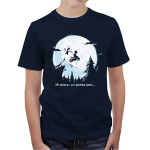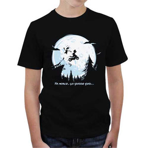Tous les motards le savent, mieux vaut assurer son freinage lorsqu’on aborde un virage délicat… Lui, on peut dire qu’il a attaqué la courbe avec un peu trop de confiance ! Normal, lorsqu’on transporte E.T. et qu’on est persuadé que le gentil extraterrestre va rattraper le coup… Sauf qu’à cette vitesse, c’est tout de suite moins évident qu’à vélo ! Une référence pleine d’humour à un classique du septième art, pour un tee-shirt tout simplement indispensable !