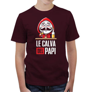Le t-shirt "Calva del Papi" détourne avec humour l’univers sérieux de La Casa de Papel. L'illustration met en scène un personnage vêtu de la célèbre combinaison rouge et portant le fameux masque… mais cette fois, un verre de calvados à la main ! Son regard égaré et l’effet visible de l’alcool cassent totalement l'image du braqueur professionnel. Ce design parodique, drôle et bien pensé, plaira autant aux amateurs de Casa de Papel qu'aux fans de second degré. Parfait pour afficher votre goût pour les détournements et l’humour (très légèrement) alcoolisé !