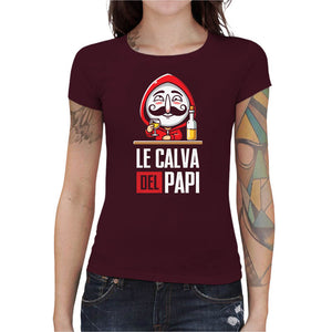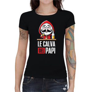 Le t-shirt "Calva del Papi" détourne avec humour l’univers sérieux de La Casa de Papel. L'illustration met en scène un personnage vêtu de la célèbre combinaison rouge et portant le fameux masque… mais cette fois, un verre de calvados à la main ! Son regard égaré et l’effet visible de l’alcool cassent totalement l'image du braqueur professionnel. Ce design parodique, drôle et bien pensé, plaira autant aux amateurs de Casa de Papel qu'aux fans de second degré. Parfait pour afficher votre goût pour les détournements et l’humour (très légèrement) alcoolisé !