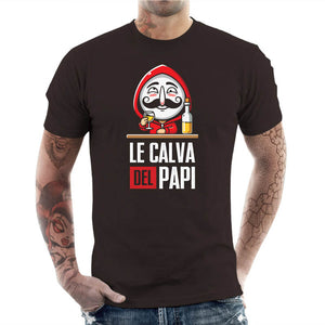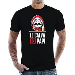 Le t-shirt "Calva del Papi" détourne avec humour l’univers sérieux de La Casa de Papel. L'illustration met en scène un personnage vêtu de la célèbre combinaison rouge et portant le fameux masque… mais cette fois, un verre de calvados à la main ! Son regard égaré et l’effet visible de l’alcool cassent totalement l'image du braqueur professionnel. Ce design parodique, drôle et bien pensé, plaira autant aux amateurs de Casa de Papel qu'aux fans de second degré. Parfait pour afficher votre goût pour les détournements et l’humour (très légèrement) alcoolisé !
