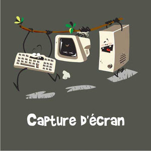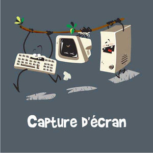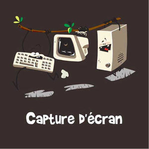 Vous vous demandez comment réaliser une capture d’écran ? C’est tout simple, débranchez-le, ficelez-le bien, partez sur la pointe des pieds et ne vous faites pas prendre… On peut vous assurer que votre entourage va adorer ce jeu de mots 100% Checkpoint, rehaussé d’un style cartoon complètement délirant. Le tee-shirt geek et humoristique par excellence !