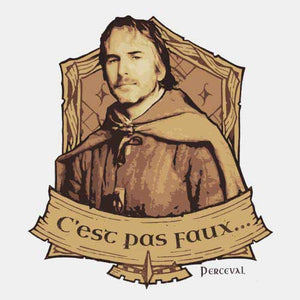 Pilier de la série Kaamelott, Perceval s’est forgé au fil des saisons un statut de personnage culte du fait de sa personnalité incroyablement attachante. Naïf, sensible, et pas spécialement brillant, il use d’une technique imparable soufflée par son confrère Karadoc, lorsqu’il ne comprend pas une situation: C’est pas faux. Une réplique culte, que l’on a adaptée en tee-shirt, et qui vous sortira vous aussi de bien des traquenards. Merci qui ?