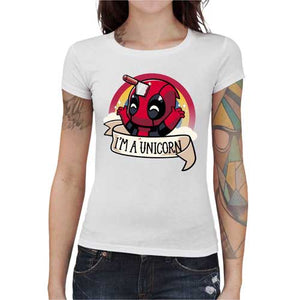 Anti-héros par excellence, le très déjanté Deadpool ne manque pas d’humour, et on adore ça chez Checkpoint ! Grâce à ses super-pouvoirs de régénération, il peut ainsi se faire passer pour une licorne à sa façon… avec un couteau dans le front. En voilà un qui va faire un malheur dans les soirées déguisées. Du pur Deadpool, pour un tee-shirt Checkpoint aussi kawaii que décalé !