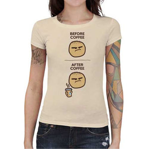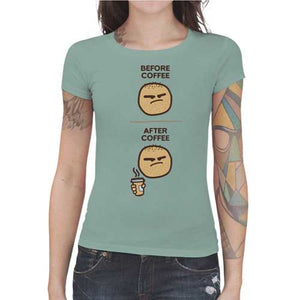 Ah, le café, quel breuvage magique… Il nous obsède tellement qu’on s’est dit qu’il fallait en faire un tee-shirt humoristique, c’est dire ! On n’imagine pas un matin sans lui et on ne se sent pas tout à fait réveillé tant qu’on n’a pas eu droit à notre dose de caféine… Bref, le café ça vous change un homme, et c’est quelque chose que l’on voulait absolument traduire sur un t-shirt ! Comme vous pouvez le constater, grâce au café ce sympathique buveur est tout simplement métamorphosé. Un modèle plein d’humour, dans la plus pure tradition des memes d’Internet.