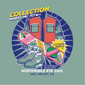 Le t-shirt pour les fans de Marty McFly !! La panoplie complète pour frimer en soirée ! Les chaussures qui se lacent automatiquement, le blouson auto-sèchant et l'overboard anti-gravité.