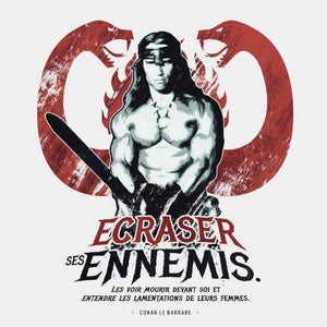 Le très philosophe Conan n’est pas là pour rigoler ! Son job, c’est distribuer des mandales, en bon barbare qu’il est. La réplique culte d’Arnold Schwarzenegger dans Conan le Barbare, film qui allait le rendre célèbre dans le monde entier, est ainsi une perle de premier degré ! Du pain béni pour nous, qui aimons vous proposer de surpuissants tee-shirts ciné !