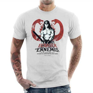 Le très philosophe Conan n’est pas là pour rigoler ! Son job, c’est distribuer des mandales, en bon barbare qu’il est. La réplique culte d’Arnold Schwarzenegger dans Conan le Barbare, film qui allait le rendre célèbre dans le monde entier, est ainsi une perle de premier degré ! Du pain béni pour nous, qui aimons vous proposer de surpuissants tee-shirts ciné !