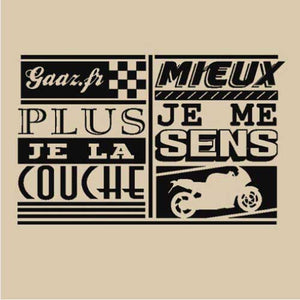 Personnellement, plus on la couche et mieux on se sent, pas vous ? D’ailleurs c’est tellement bon que ça en deviendrait presque une addiction. De quoi est-ce qu’on parle ? De notre moto, bien évidemment ! À quoi est-ce que vous pensiez, encore ? Aussi sobre que stylé, drôle, et délicieusement ambigu, voilà un tee-shirt idéal pour tester l’esprit mal placé et le sens de l’humour de votre entourage. Un modèle au top pour les motards.