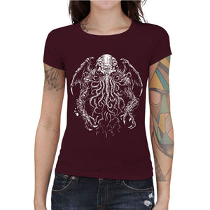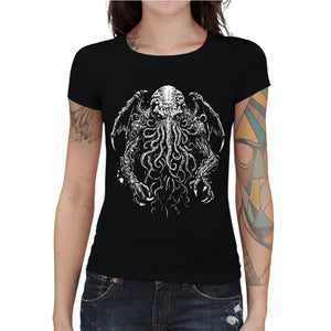 Ce t-shirt terrifiant présente une illustration monochrome blanche de Cthulhu, le monstre mythique créé par H.P. Lovecraft, surgissant des profondeurs obscures. L'illustration détaillée, entièrement en blanc sur fond sombre, capture parfaitement l'aura mystique et inquiétante de cette créature cosmique. Avec ses tentacules menaçants et son regard perçant, Cthulhu semble s'approcher lentement mais sûrement, prêt à semer la terreur. Ce design est parfait pour les amateurs de littérature d'horreur, de mythologie lovecraftienne, et ceux qui recherchent un look saisissant et sombre sur un t-shirt. Un véritable hommage à l'univers terrifiant et fascinant de Lovecraft.