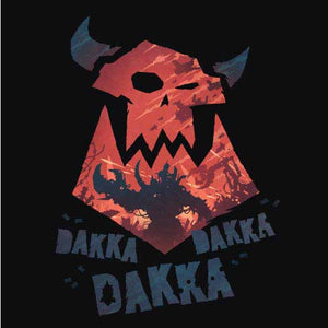 Dakka Dakka ! Un terme que les fans de Warhammer 40k connaissent bien, et qu’on s’est fait un plaisir d’adapter en t-shirt ! Onomatopée désignant le bruit que font les armes des orks lorsqu’ils tirent, mais aussi un élément de langage de leur propre langue, le terme Dakka a peu à peu gagné en popularité, jusqu’à devenir un meme Internet. Il faut dire que ces chers orks aiment les armes qui font du bruit ! Plus elles en font, plus elles tirent vite, mieux c’est ! Un tee-shirt au minimalisme très graphique, qui fera le bonheur de tous les amoureux de Warhammer.