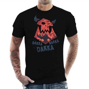 Dakka Dakka ! Un terme que les fans de Warhammer 40k connaissent bien, et qu’on s’est fait un plaisir d’adapter en t-shirt ! Onomatopée désignant le bruit que font les armes des orks lorsqu’ils tirent, mais aussi un élément de langage de leur propre langue, le terme Dakka a peu à peu gagné en popularité, jusqu’à devenir un meme Internet. Il faut dire que ces chers orks aiment les armes qui font du bruit ! Plus elles en font, plus elles tirent vite, mieux c’est ! Un tee-shirt au minimalisme très graphique, qui fera le bonheur de tous les amoureux de Warhammer.
