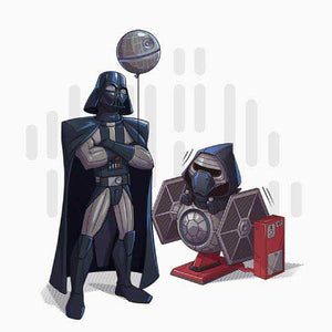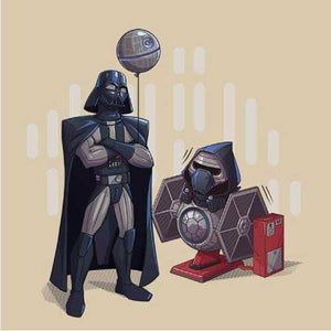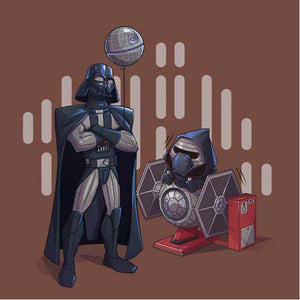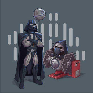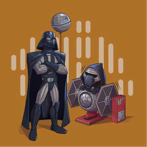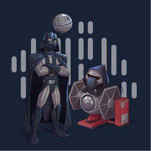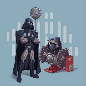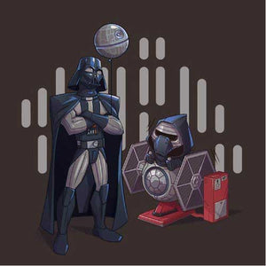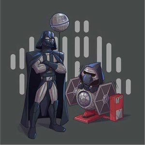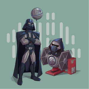 Si vous cherchiez un tee-shirt Star Wars mignon et plein d’humour, Dark grandpa saura vous combler ! Ah, si Dark Vador n’était pas mort dans Le Retour du Jedi… que se serait-il passé ? Il aurait bien sûr pu continuer de renouer avec Luke, de s’éloigner du côté obscur, mais il aurait également pu passer du temps avec Ben ! La joie d’être un papi profitant de son petit-fils, ça n’a pas de prix, n’est-ce pas ? C’est ce qu’on a voulu représenter sur ce t-shirt original et adorable, où le petit Kylo Ren a l'air comme un poisson dans l’eau sur son manège Tie Fighter !