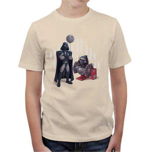Si vous cherchiez un tee-shirt Star Wars mignon et plein d’humour, Dark grandpa saura vous combler ! Ah, si Dark Vador n’était pas mort dans Le Retour du Jedi… que se serait-il passé ? Il aurait bien sûr pu continuer de renouer avec Luke, de s’éloigner du côté obscur, mais il aurait également pu passer du temps avec Ben ! La joie d’être un papi profitant de son petit-fils, ça n’a pas de prix, n’est-ce pas ? C’est ce qu’on a voulu représenter sur ce t-shirt original et adorable, où le petit Kylo Ren a l'air comme un poisson dans l’eau sur son manège Tie Fighter !