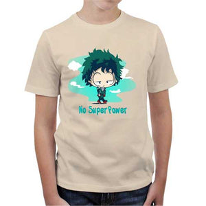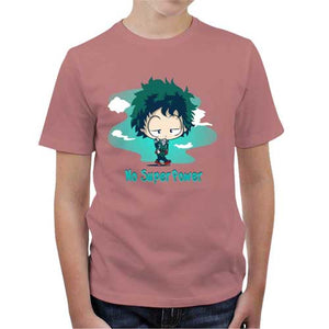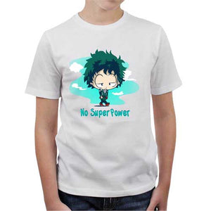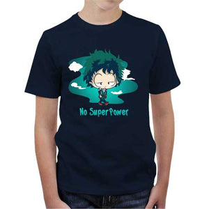 Adolescent lambda, Izuku Midoriya rêve d’être un super héros, et pourtant, la fatalité veut qu’il soit né sans alter, et donc sans pouvoir ! Dans cette version SD de l’attachant personnage, on peut dire que la déception et l’amertume se lisent sur son visage ! Un tee-shirt mimi tout plein pour les aficionados du manga et anime My Hero Academia.
