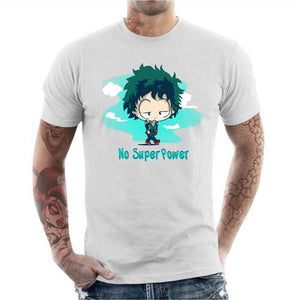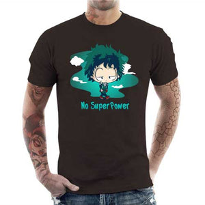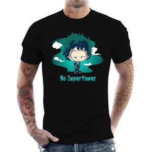 Adolescent lambda, Izuku Midoriya rêve d’être un super héros, et pourtant, la fatalité veut qu’il soit né sans alter, et donc sans pouvoir ! Dans cette version SD de l’attachant personnage, on peut dire que la déception et l’amertume se lisent sur son visage ! Un tee-shirt mimi tout plein pour les aficionados du manga et anime My Hero Academia.