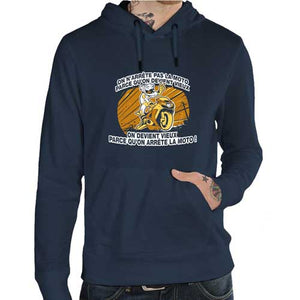 Les premières fraicheurs arrivent, et vous n’êtes plus sûr que votre tee-shirt va suffire ? Pas de panique ! Ce Sweat Moto - Devenir vieux va tout simplement vous sauver la vie !