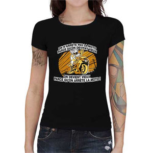 Vous êtes une femme geek, et fier de l’être ? Ou bien vous souhaitez faire plaisir à votre merveilleuse geekette ? Alors on n’a aucun doute que ce T shirt Motarde - Devenir vieux va vous plaire !