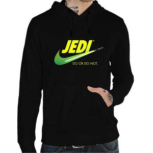 Les fans de Stars Wars auront sans doute reconnu le conseil que Yoda donne à Luke Skywalker, qui nous a servi d’inspiration pour cet incroyable t-shirt ! Invitation au dépassement de soi, Do or do not, en français fais-le ou ne le fais pas, figure bien sûr au panthéon des répliques de l’Empire contre-attaque. Pour le mettre en image de façon originale, on a opté pour un détournement ultra classe du logo du célèbre équipementier sportif, et de son slogan le plus emblématique : Just do it ! Un t-shirt Star Wars moderne et créatif, pour porter haut les valeurs des Jedi.