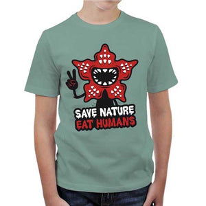 Une seule espèce est dangereuse pour toute la biodiversité… Les humains ! Détourné de Stranger Things cette illustration fera passer votre message écologique avec grâce et culture.