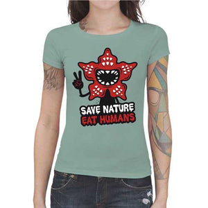 Une seule espèce est dangereuse pour toute la biodiversité… Les humains ! Détourné de Stranger Things cette illustration fera passer votre message écologique avec grâce et culture.
