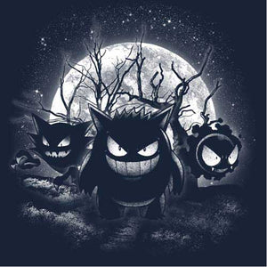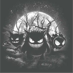 Dresseurs débutants ou confirmés, la classe de ce t-shirt Pokémon ne vous aura pas échappée ! Parmi les nombreuses espèces créées par Game Freak, il y en a une que l’on trouve particulièrement dans les lieux anciens, lugubres, voire hantés… Vous l’avez deviné, ce sont les Pokémon de type Spectre ! Histoire de les mettre en lumière, on a choisi trois de leurs membres les plus emblématiques, Spectrum, Ectoplasma et Fantominus, qu’on a représentés sur un sublime fond de pleine lune. Un tee-shirt Pokémon dark et badass, qui ne demande qu’à rejoindre votre collection !