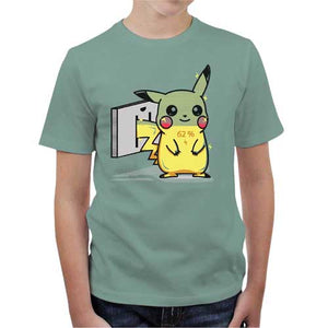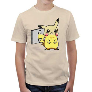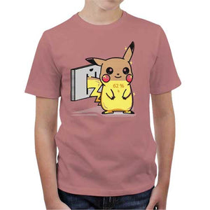 Qu’il soit le plus célèbre Pokémon ne change rien à l’affaire, Pikachu a naturellement besoin de recharger les batteries avec une rude journée à livrer bataille aux côtés de Sacha. Mais vu la puissance du petit, gare à la facture d’électricité... Coup de foudre assuré pour ce tee-shirt aussi drôle que mignon, idéal pour montrer votre attachement à la fantastique saga de Nintendo !